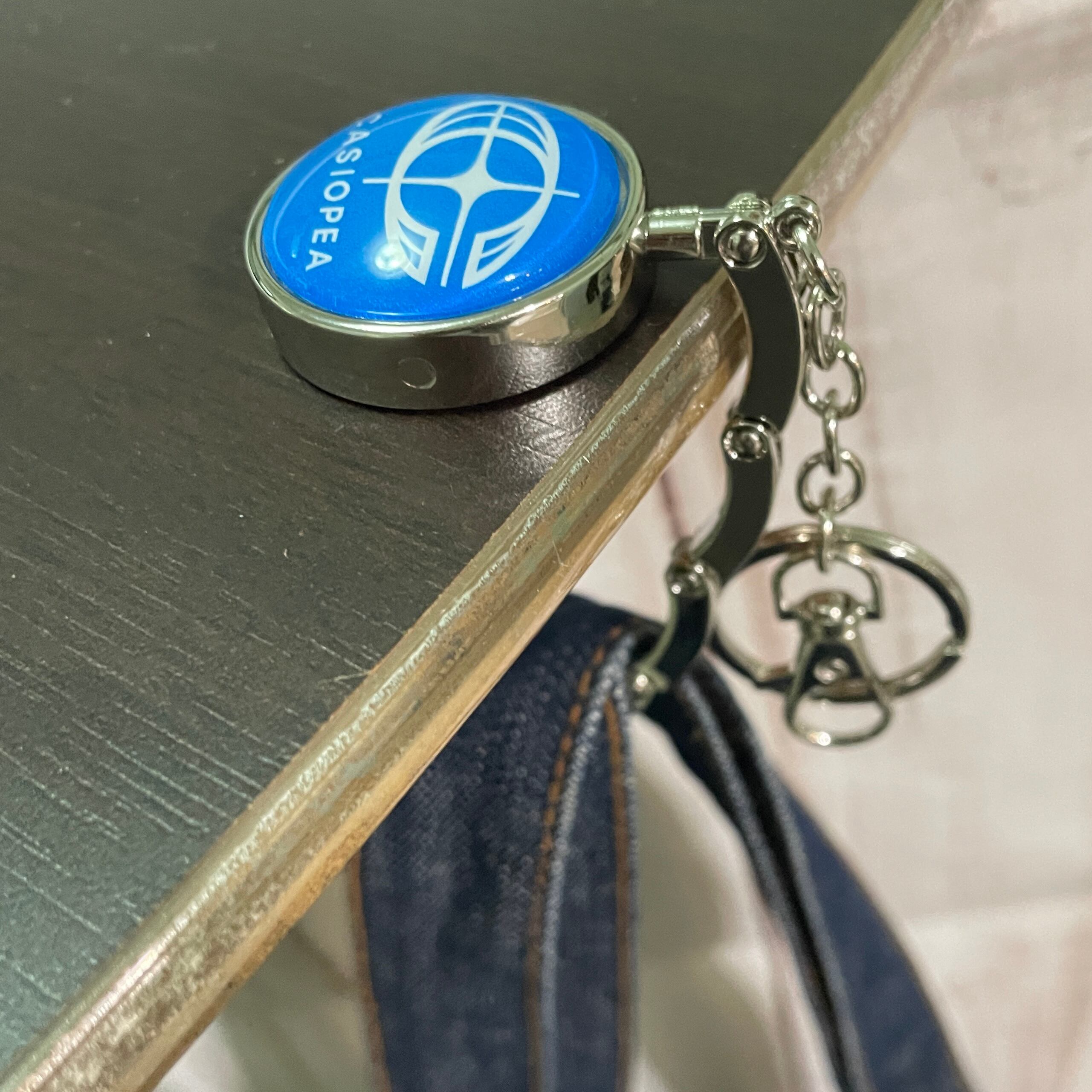 デスクやテーブルに取り付けてバッグを吊り下げる便利なアイテムです。